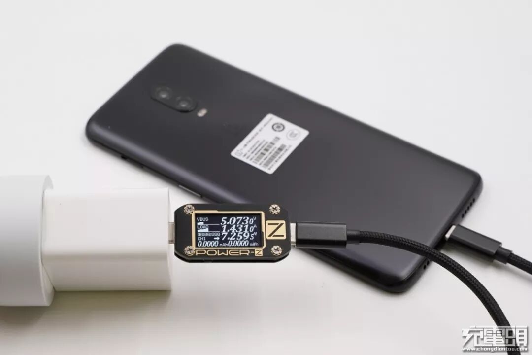 充一加6手机,功率7.38W(电压5.07V,电流1.45A),普通充电模式,未开启快充,原因是一加6手机不支持PD、QC快充。