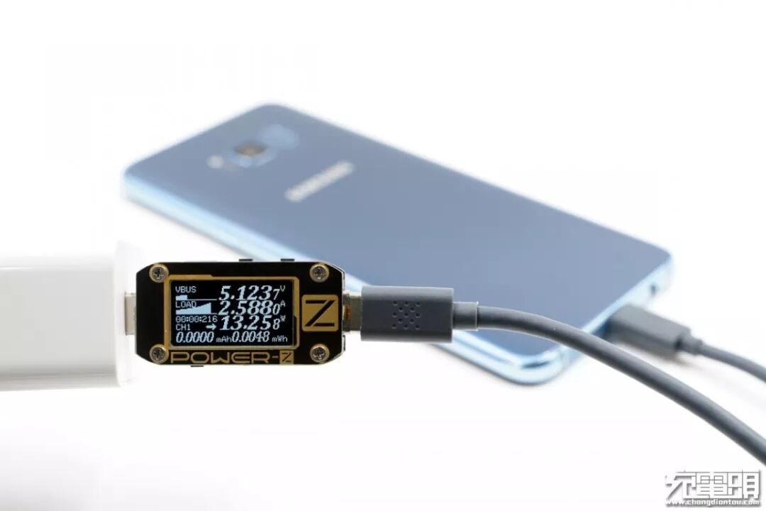 充三星S8+,功率13.25W(电压5.12V,电流2.58A),开启快充。