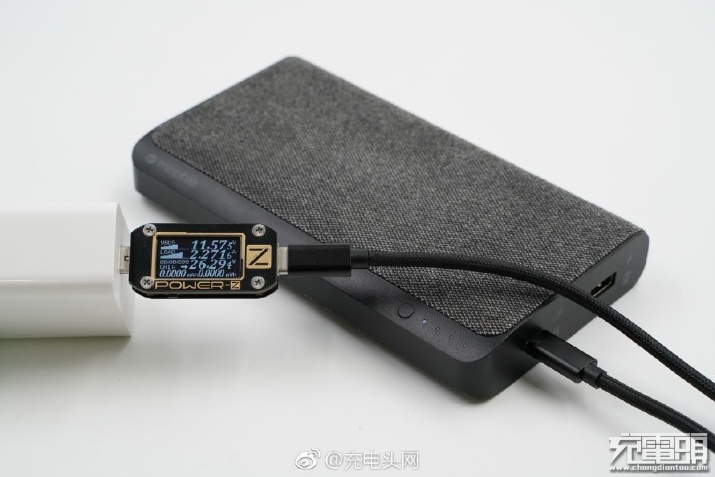 mophie powerstation USB-C XXL移动电源,容量19500mAh,电量1/4 LED,电压电流分别为11.57V/2.27A,功率26.29W,开启快充。