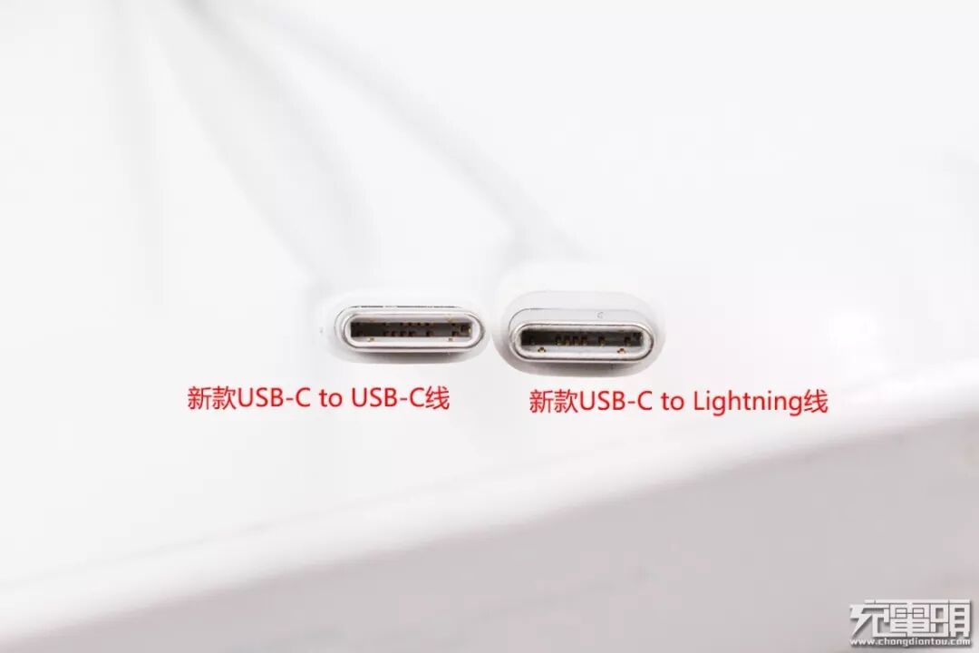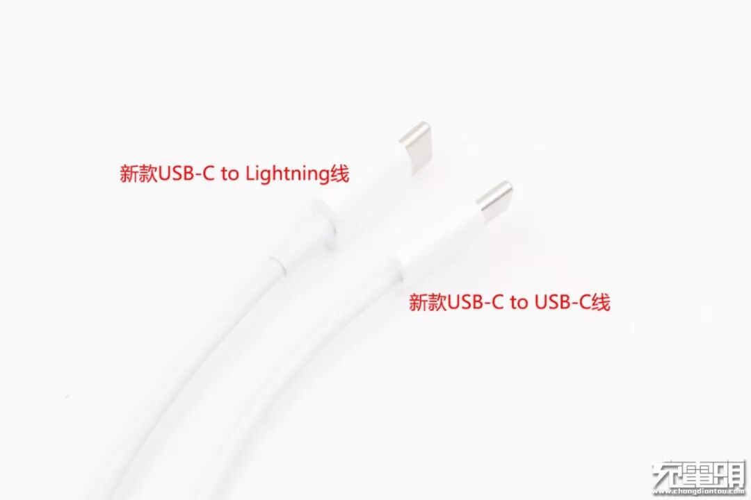 与苹果新款USB-C to Lightning线相比,线径基本一致,但是USB-C to USB-C线的接口端塑料外壳更加扁平,线缆与接口连接的部分也没有做加强处理。