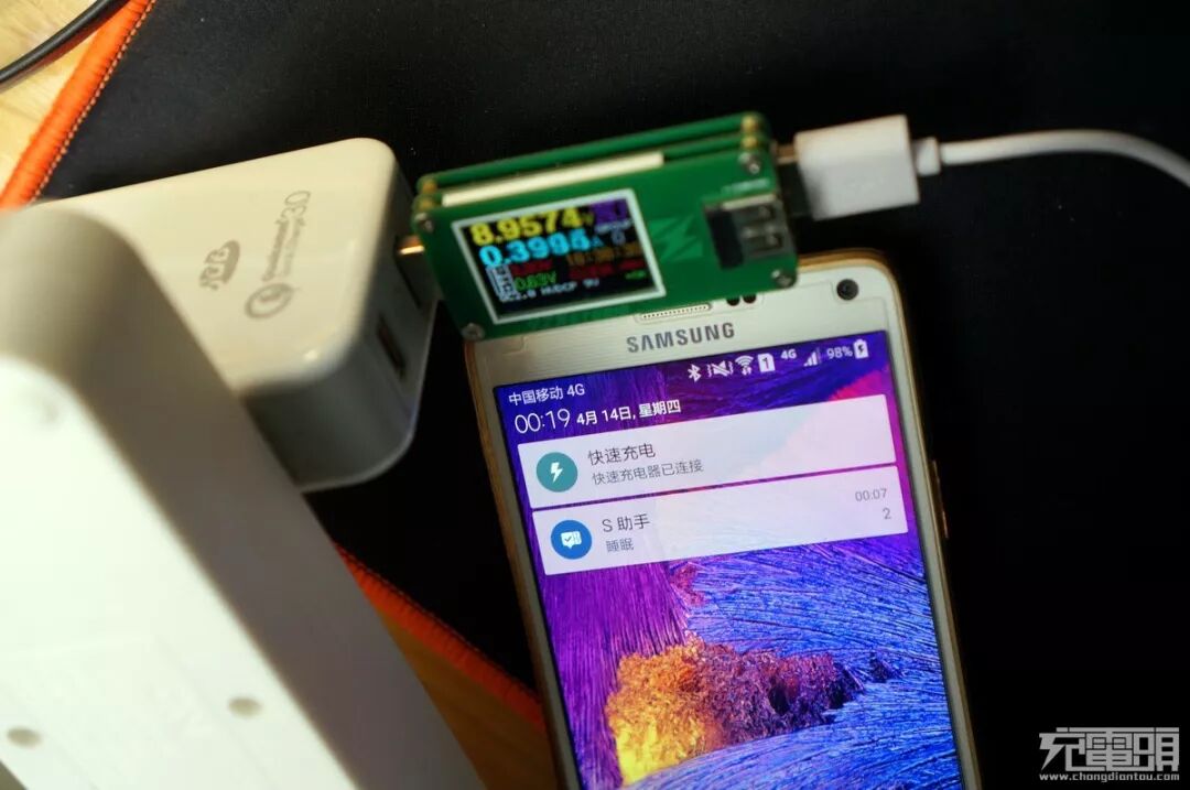 三星note4 实际充电测试,握手正常,note4满电状态,应该没问题。