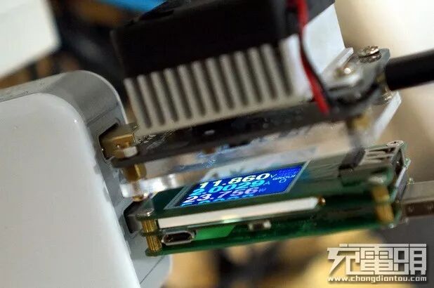 双口同时输出极限最大功率测试,双口互为独立可同时快充。输出1口电压11.86V 电流2.00A 功率23.75W、输出2口电压11.95V 电流1.58A 功率18.89W。总共输出功率42.64W,输入功率为49.75W。