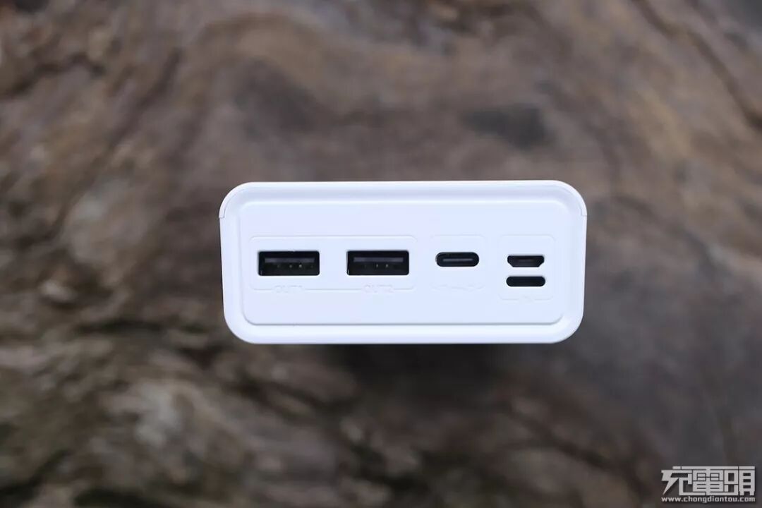 输入和输出接口集中布置在顶部面板上,USB-A、Micro、Type-C、Lightning四种USB接口种类齐全。无论是安卓用户还是苹果用户,都可以做到只用一条数据线就可以给移动电源充放电,给生活带来便利。