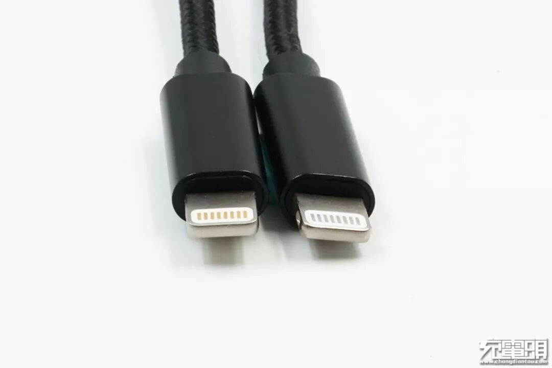 拿出数据线,可以看到线材有点不太一样。类型为USB-A to Lightning编织线,但两端插头的壳体比一般线材壳体长不少。