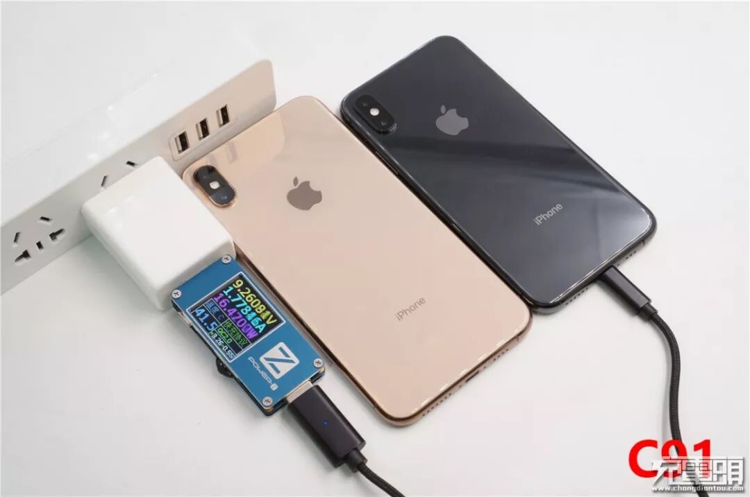 我们手上这两条C-Force QC to Lightning数据线,除了在Lightning头上使用的端子型号和触点颜色不一样之外,其余都一样,其中一条使用的C52,另一条使用的是C91。从实际测试下来,C-Force QC to Lightning数据线可以成功让iPhone XS Max、iPhone XS激活USB PD快充,只需要家里有个QC快充的充电器即可。