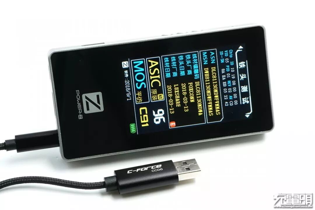 使用ChargerLAB POWER-Z MF001测试,金色触点的Lightning头采用了C52端子,苹果原装头。