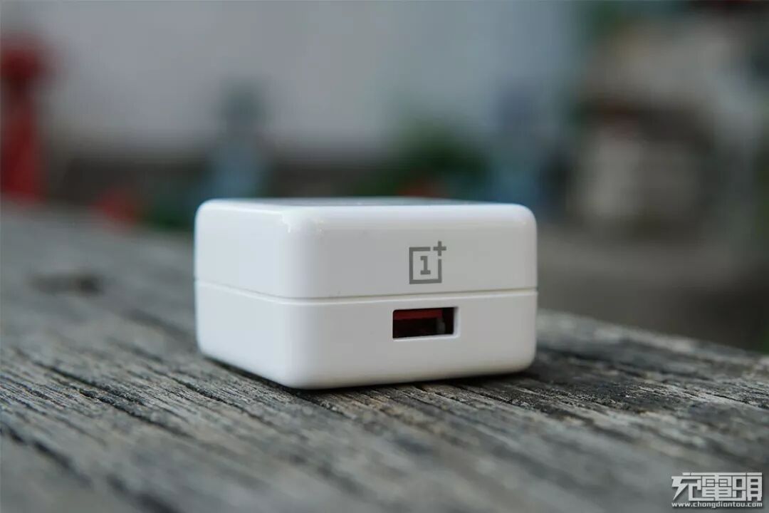 充电器接口侧印有一加的品牌logo,输出接口为USB-A口,隐约可以看到接口内部采用的是深红色舌片。