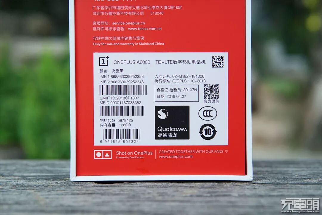 背面则印有相关的产品参数与一加售后电话及地址。