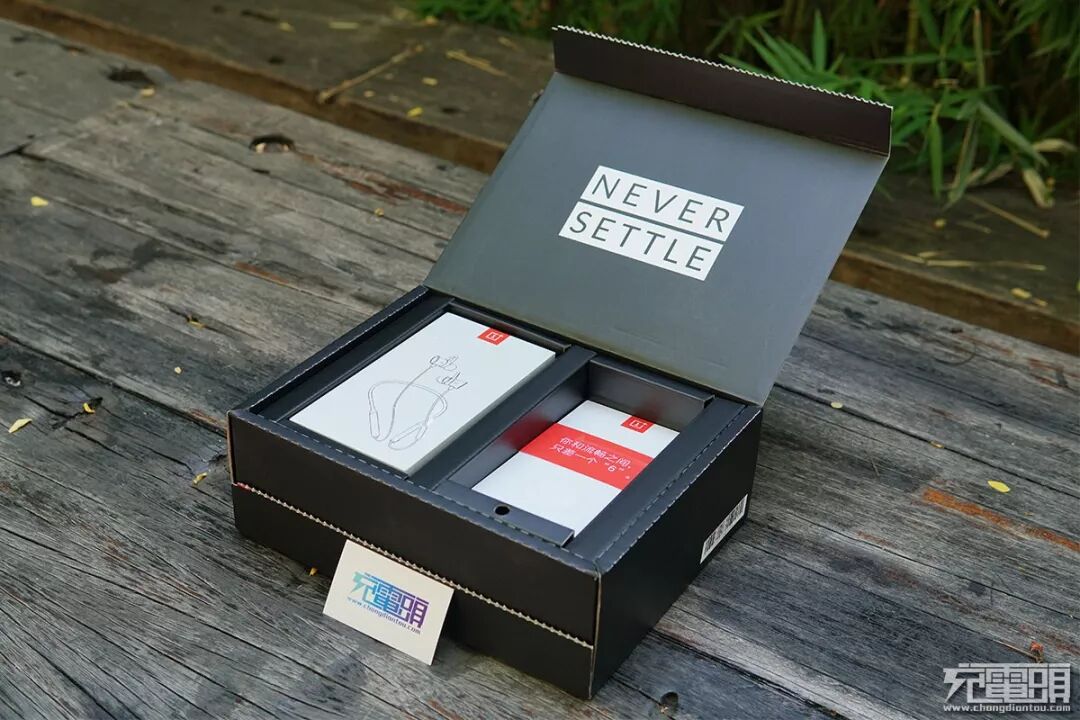 撕开封口,掀开盒盖,盒盖上印有“NEVER SETTLE”,这正代表了一加的品牌理念:不将就。