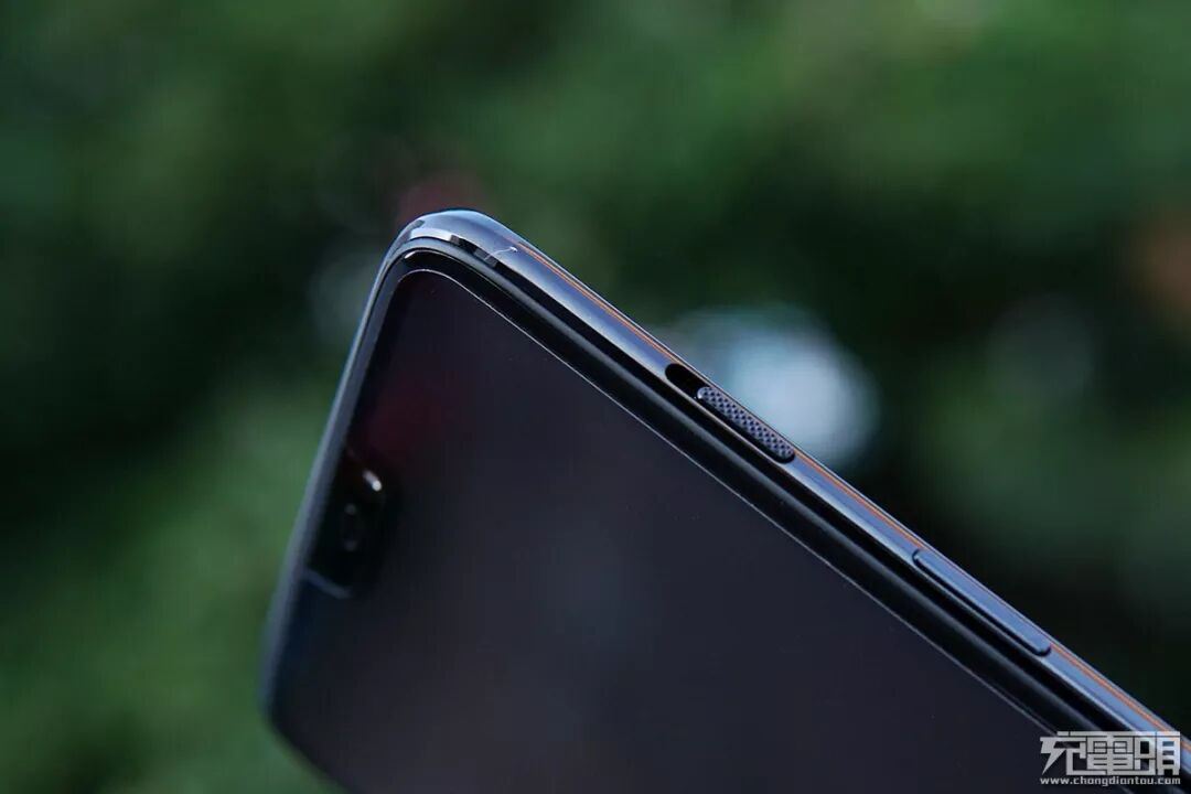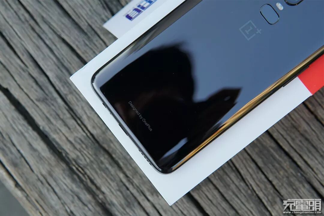 一加6的背面采用了一块带有弧度亮黑玻璃,四处边角分别做了圆角处理。