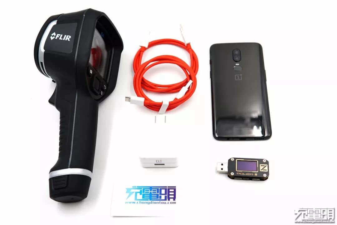 既然这样,小编就用一加6的原装充电器做了一个充电测试,以及测试在充电时一加6的温度变化。充电参数测试工具为ChargerLAB POWER-Z KM001、充电温度测试使用FLIR测温仪。