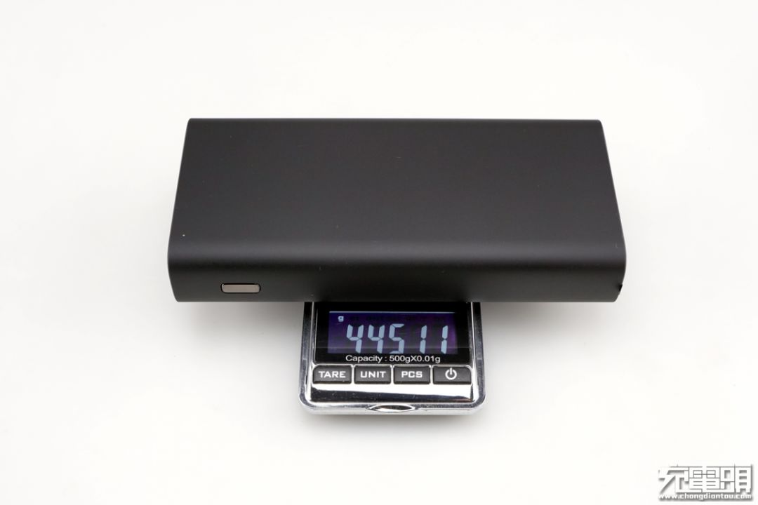重量方面,经实测可以看到重量为445g。