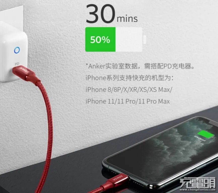 支持PD快充,为iPhone 8及以后的机型半小时输入50%的电量,当使用普通数据线充电时还在抓狂时,快充早已充到一半的电量,又可以继续奋战几个小时了。而且Lightning端采用原装C94端子头,通过了MFi认证,品质有保障,IOS全系兼容,一根线,搞定所有设备,再也不用担心弹窗的问题了。