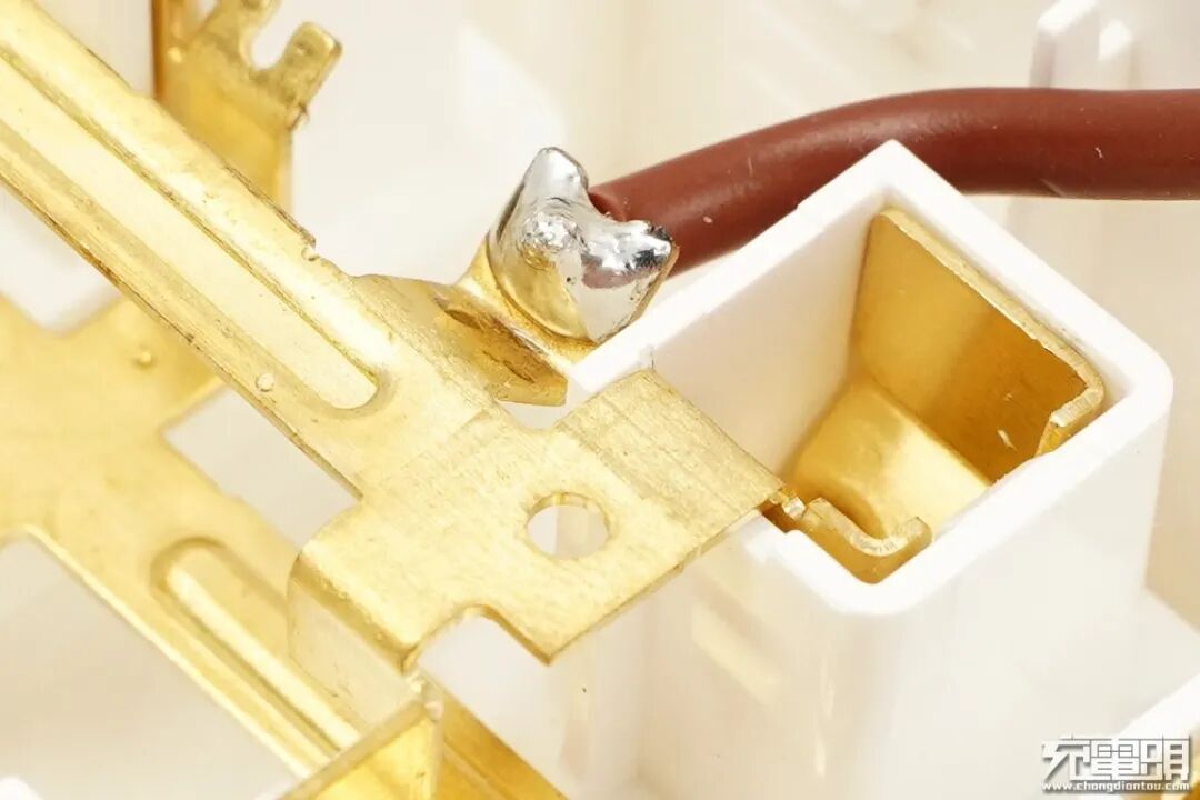 小编已对插线板进行拆解,内部使用了一体铜条设计,线材过孔焊接焊点光滑浸润度高,插套接触紧密不松动,具体拆解可以查看充电头网的拆解文章。