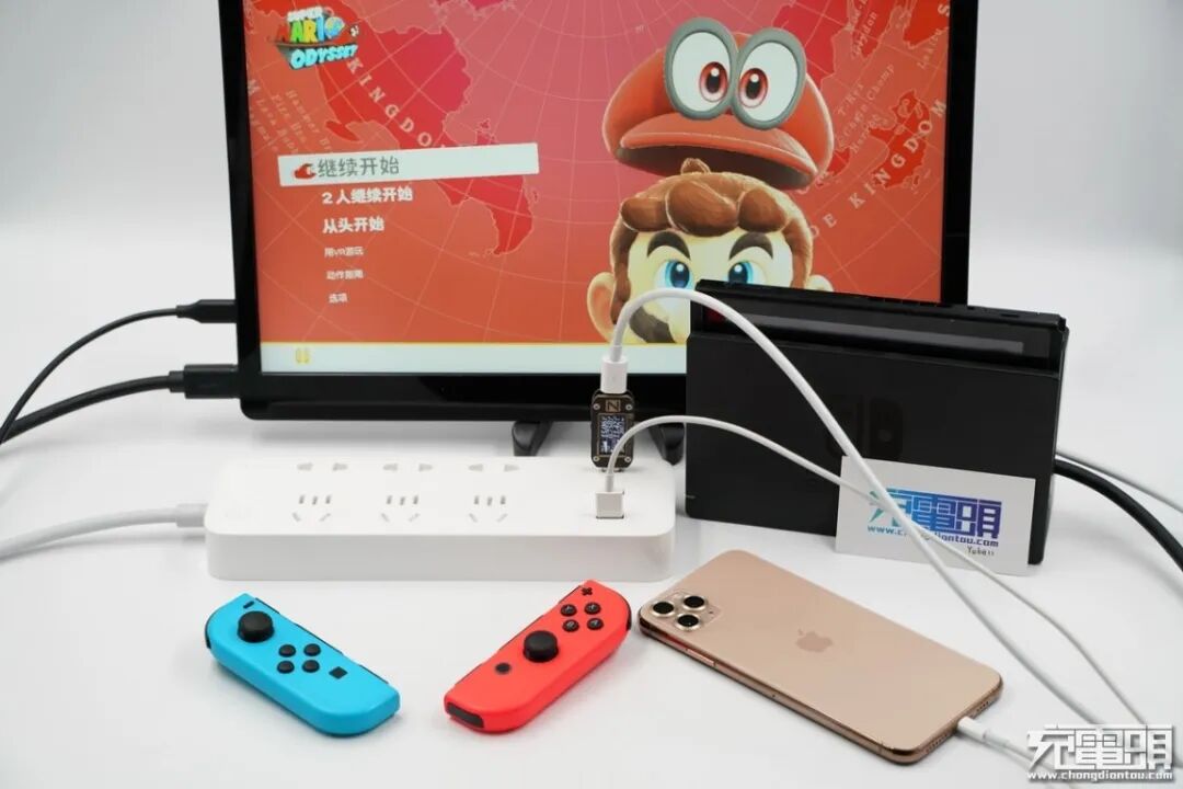 不管是单USB-C输出还是2A1C输出,紫米这款插线板都能激活Switch 底座TV模式,正常对外输出HDMI视频信号。