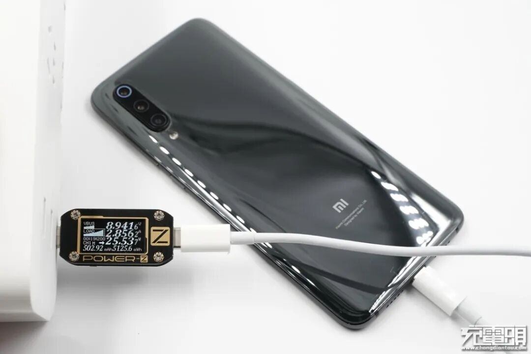 小米9支持USB PD / QC / 27W ChargeTurbo快速充电协议,为小米9充电,功率为8.94V 2.85A 25.53W,成功握手27W ChargeTurbo快充,并达到ChargeTurbo快充功率最大阶段。