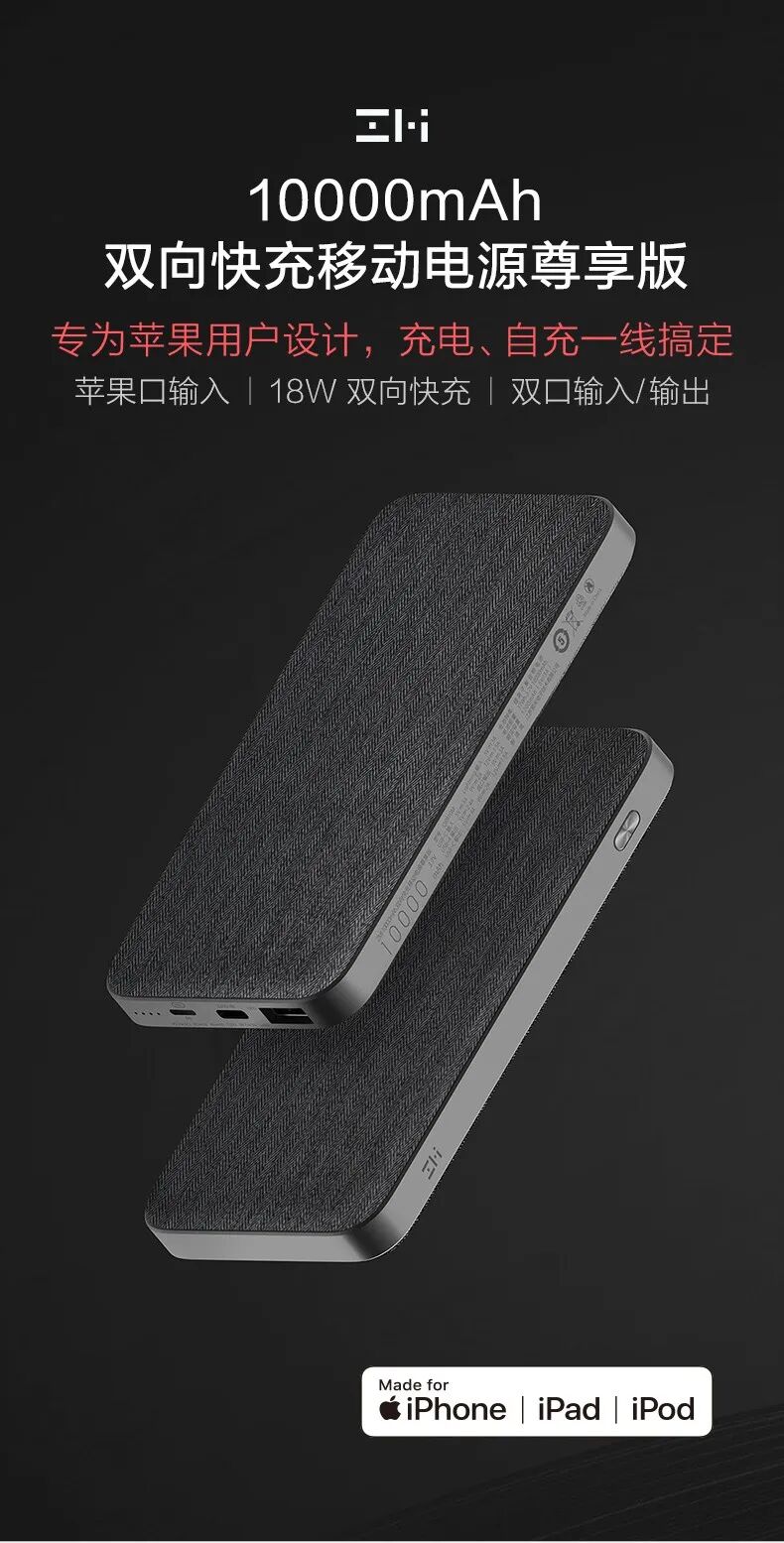 1、iPhone用户专用,紫米10000mAh双向快充移动电源尊享版评测