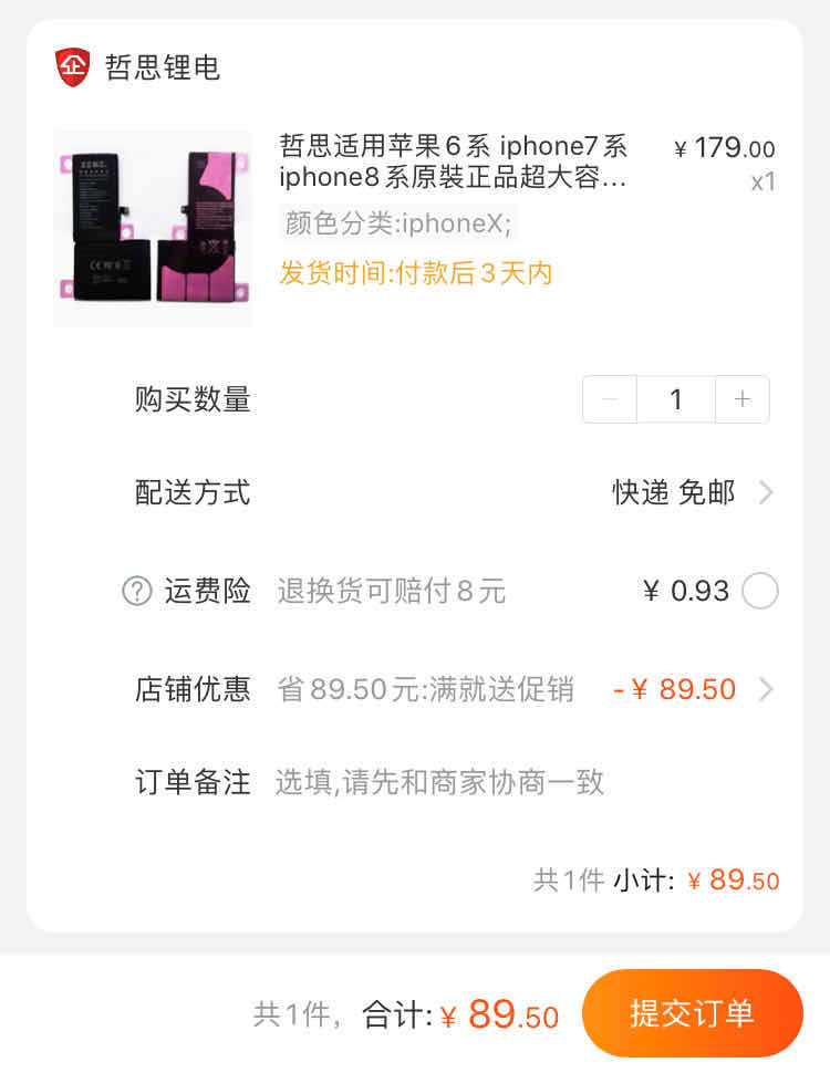 别问落地价格,问就是半价!iPhone X电池原价179,到手价格只需89.5。