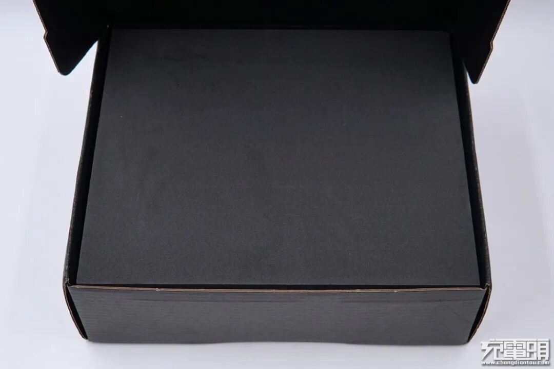 直接开箱,打开外包装,上面带有黑色的海绵隔层,这样可以起到缓冲的作用,保护产品不受磕碰。