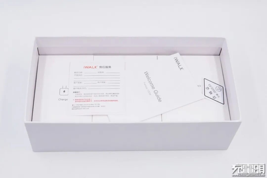 翻转至背面,左上角带有iWALK的Logo标识,右下角带有产品的详细说明,再无其他。
