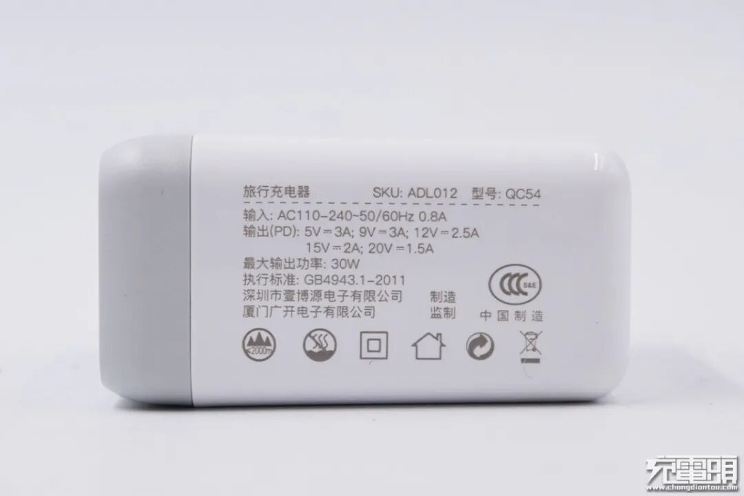 看一下充电器的参数部分,输出:5V 3A、9V 3A、12V 2.5A、15V 2A、20V1.5A。