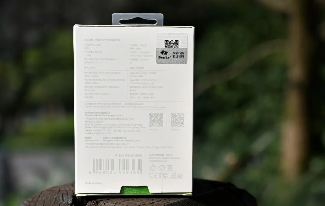看前面的图应该留意到:带拨杆的那一面有一个Type-C接口,下方标注支持PD和QC充电标准。其侧方也有具体的输入输出数据。