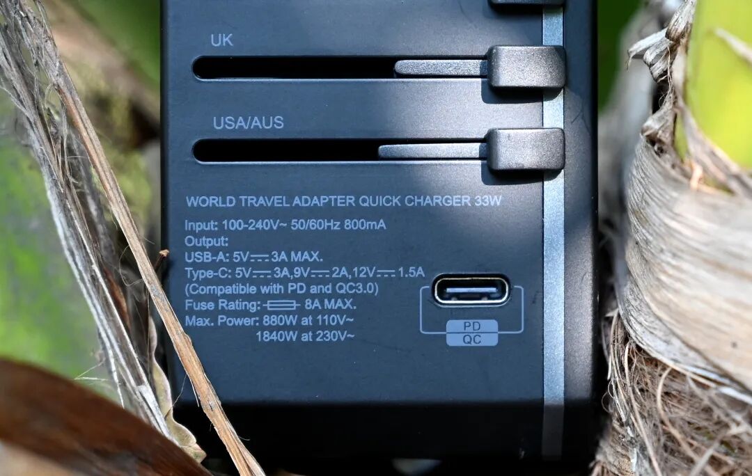PA36旅行插座转换器侧面可见三组随动拨杆。