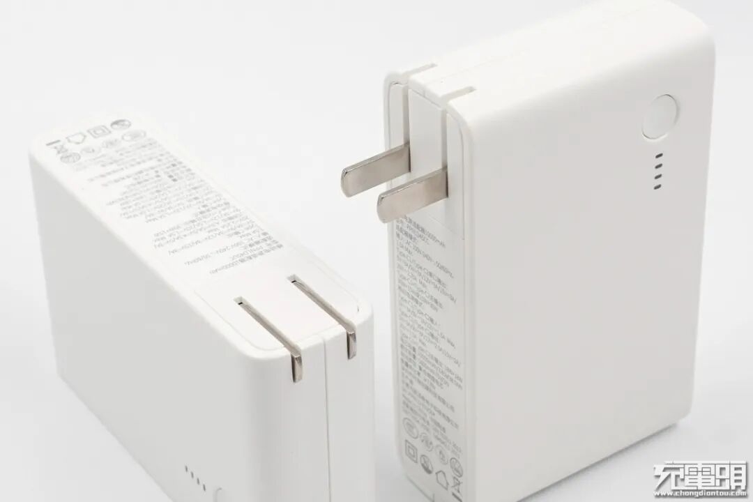 由于氮化镓的加持,整个产品在和第一代双模充能量堆以及其他的10000mAh移动电源相比较体积外形方面几乎相同,但是相较于第一代18W的充电功率提升到了最高近3倍,而且双USB接口支持同时快充输出为设备充电且同时输出时单口功率最高可达30W。