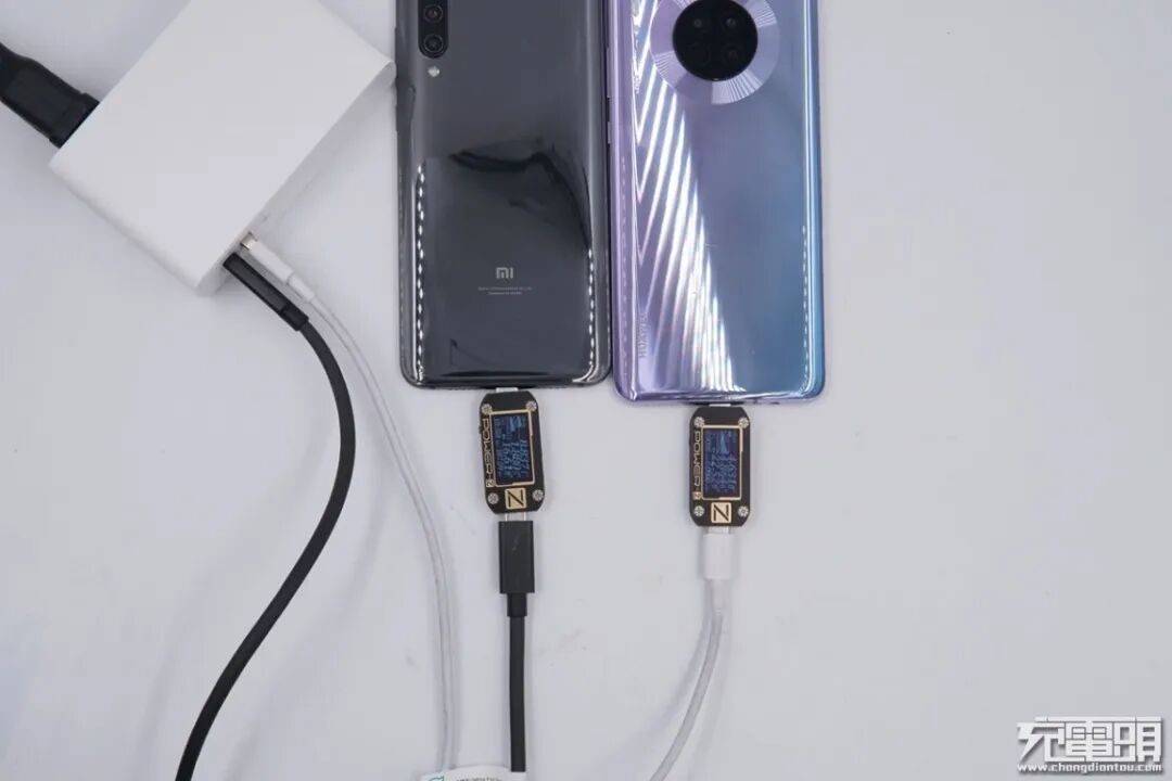 将数款手机与平板的充电测试数据放在表格当中,从测试的数据上来看,Mate30的充电功率最高,成功握手SCP快充协议,达到了22.63W;随后是支持QC快充的安卓手机。支持Apple2.4A快充的苹果设备则排在后面,均成功握手Apple2.4A快充协议。