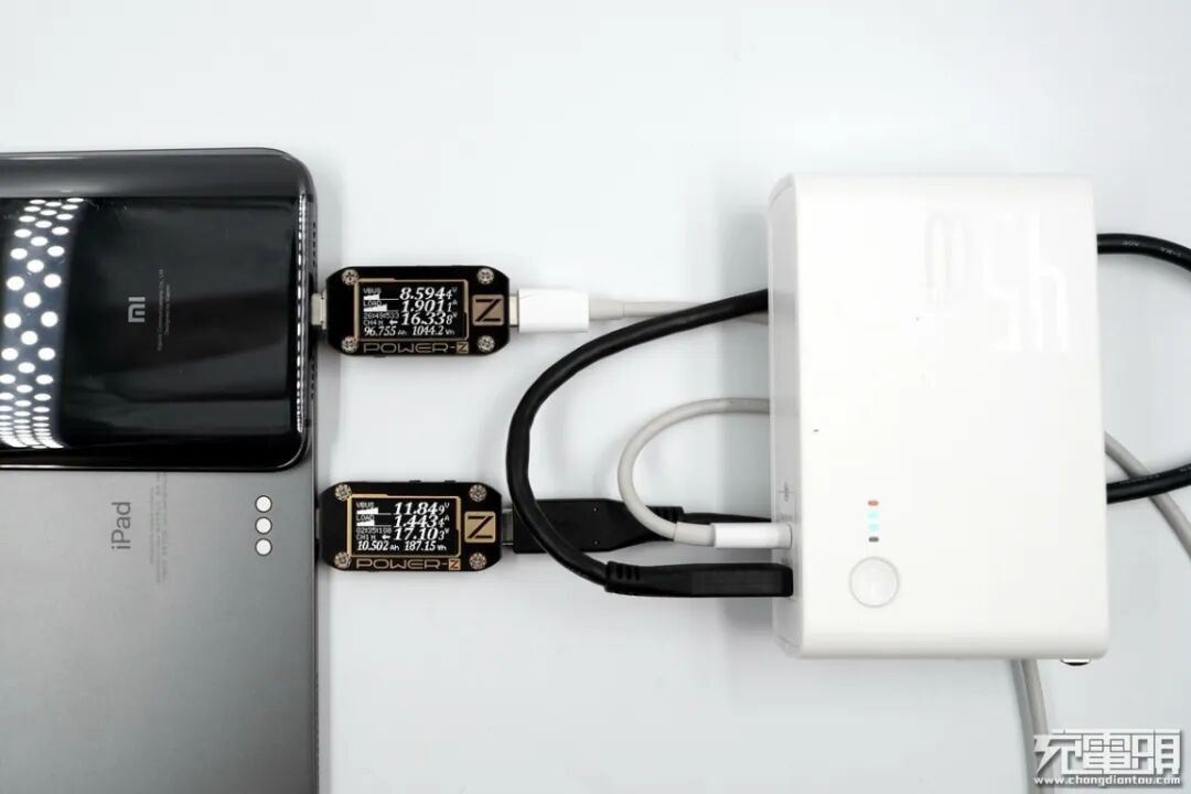 由于两款不同接口类型产品的USB-C接口的参数一致,所以下面仅对双USB-C接口版本的双口同时输出进行充电方面的测试。