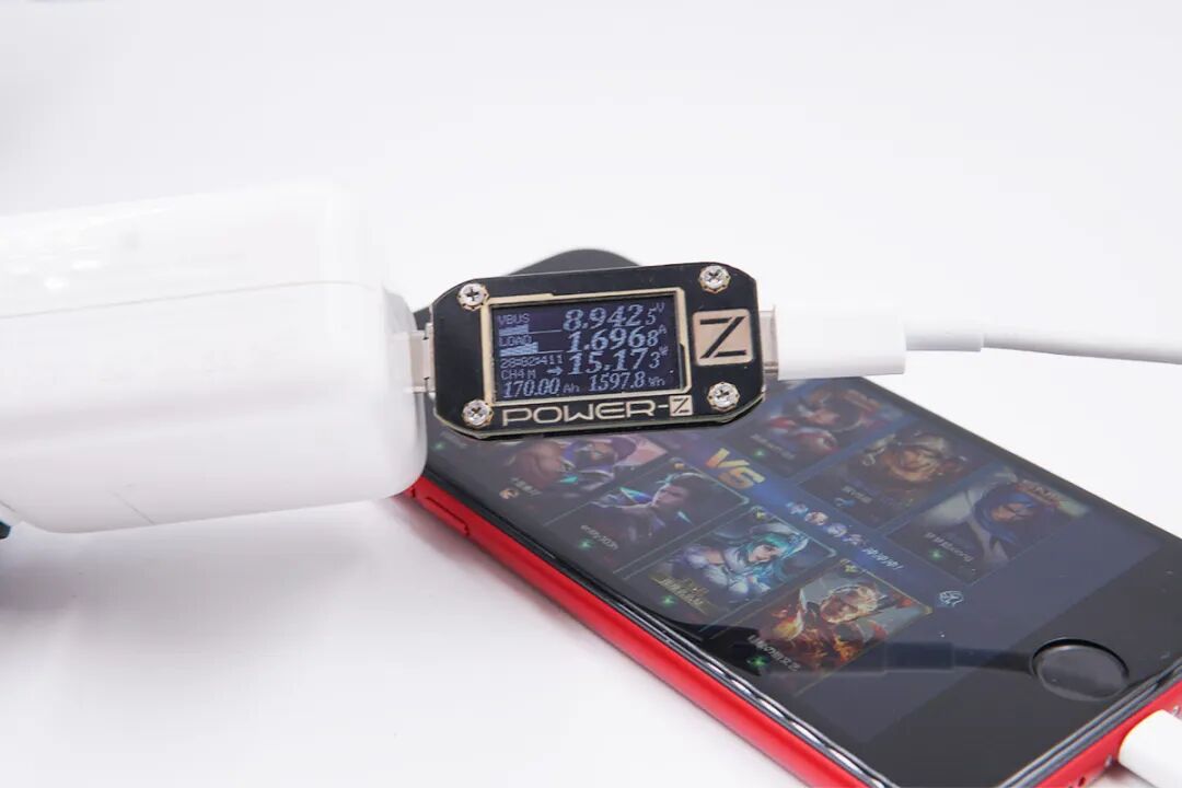 最后使用PD充电器为手机充电,功率为8.94V 1.69A 15.17W,成功握手9V电压档位,开启PD快速充电模式。测试进行到这里出现了不同,游戏过程中的PD充电功率和待机状态下PD的12W充电功率有了3W多的提升。
