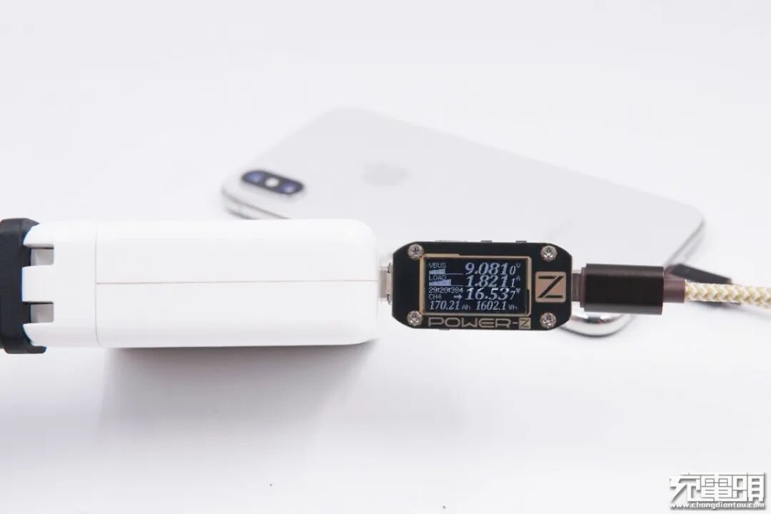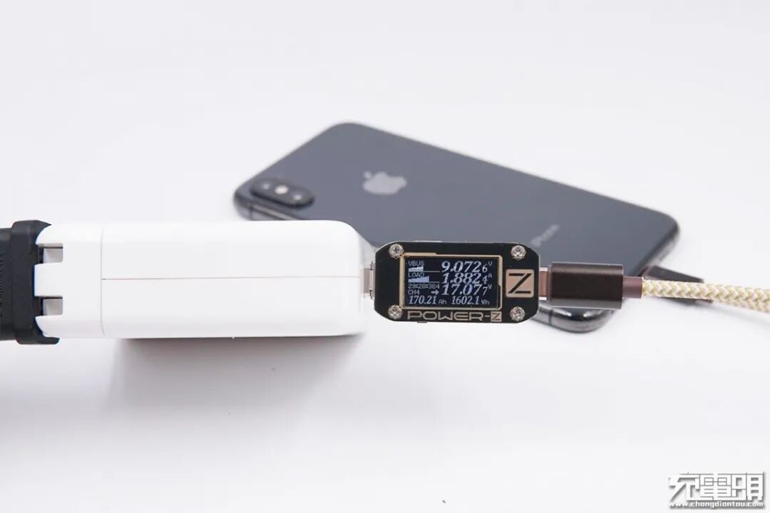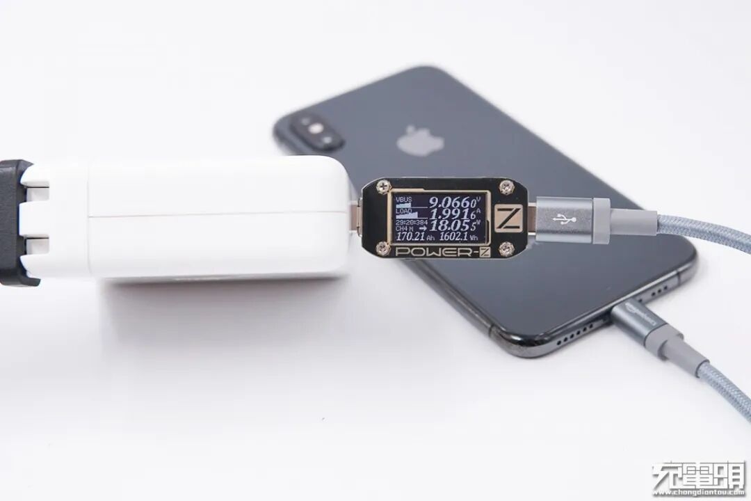 7、iPhone X四款数据线为iPhone X充电,均成功握手PD快充,充电功率在17左右。