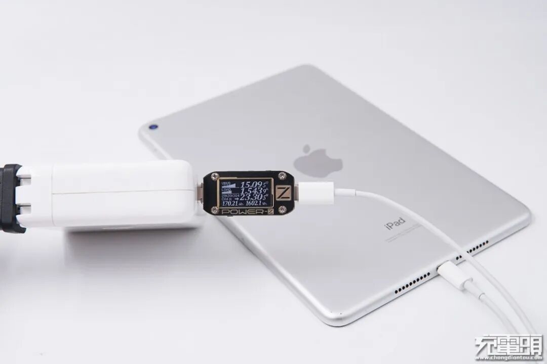 2、iPad Air 3最后将iPad Air 3的充电数据放在柱状图当中,从数据上看,充电功率均在34W左右,处于同一充电水平。