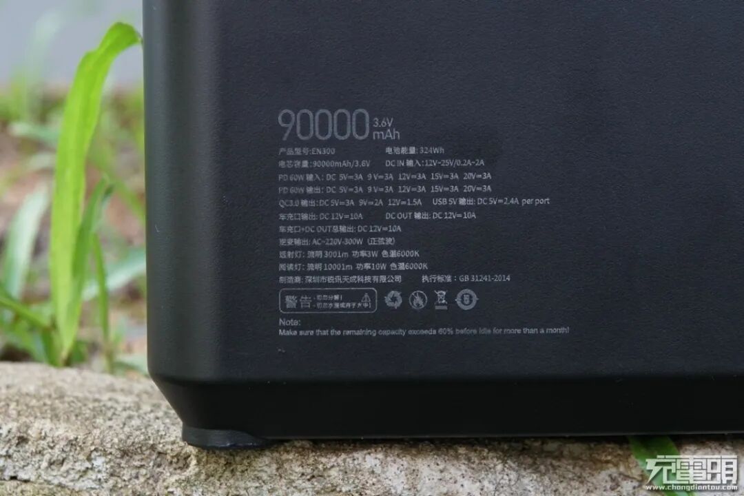 户外电源的背面,只是丝印了参数信息,再无其他。