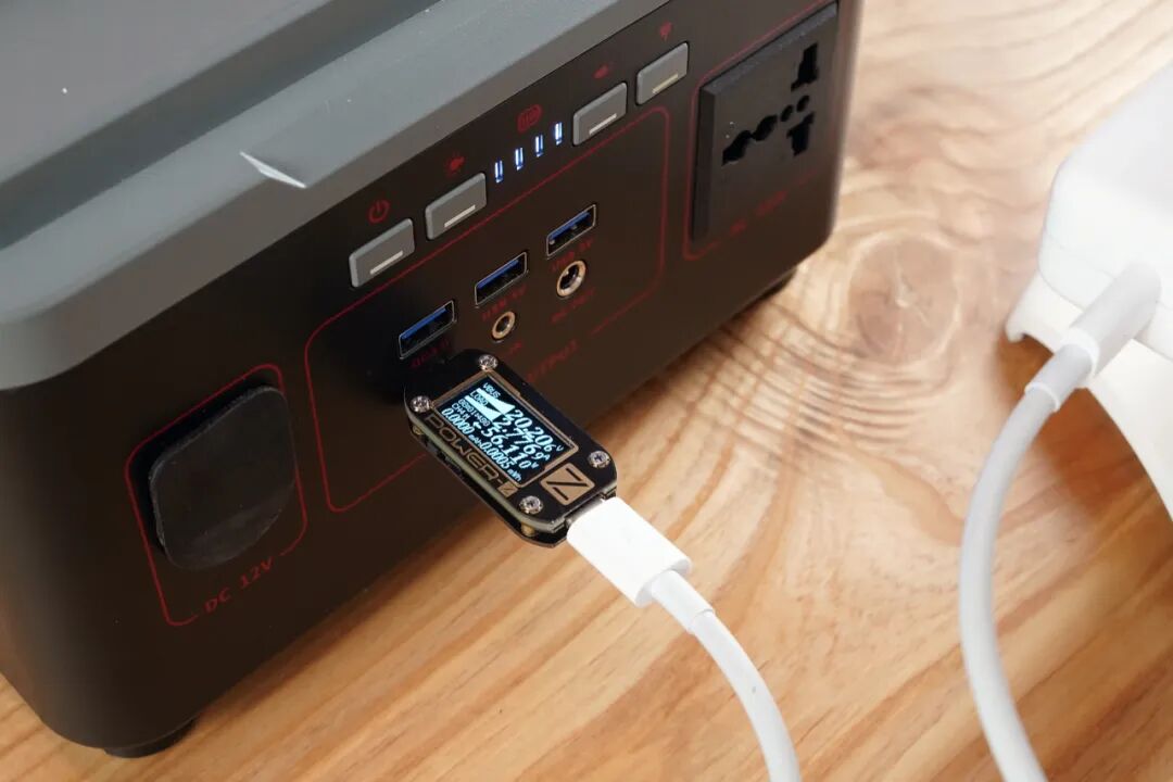 不仅如此,在如今PD快充普及的时代,羽博EN300户外电源的USB-C接口还支持60W的PD快充输入,实测通过USB-C为羽博EN300户外电源充电,功率为20.20V 2.77A 56.11W,成功握手20V电压档位,开启PD快充输入。