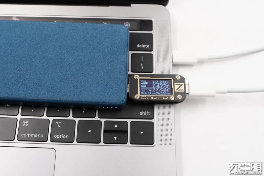 MacBook Pro支持USB PD快充协议,使用USB-C为MacBook Pro充电,功率为12.20V 1.43A 17.54W,成功握手12V电压档位,开启PD快速充电模式。