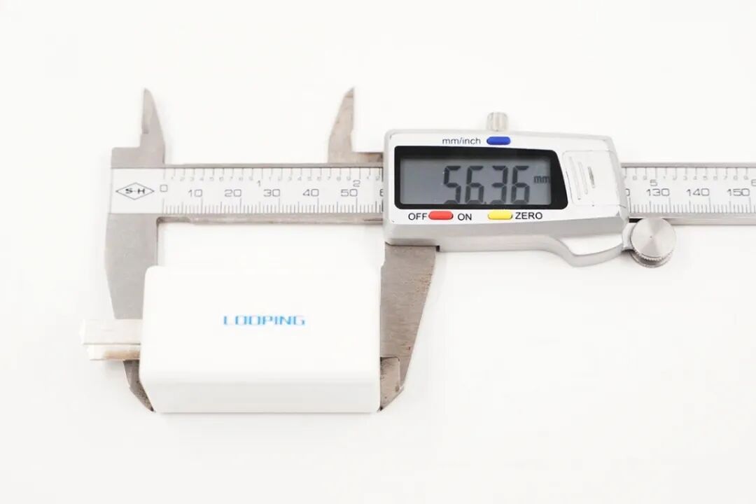 长度为56.36mm,根据三围尺寸可计算出功率密度,龙冰科技65W氮化镓充电器功率密度高达1.30W/cm³,达到当前氮化镓充电器功率密度天花板,成为业界之最。