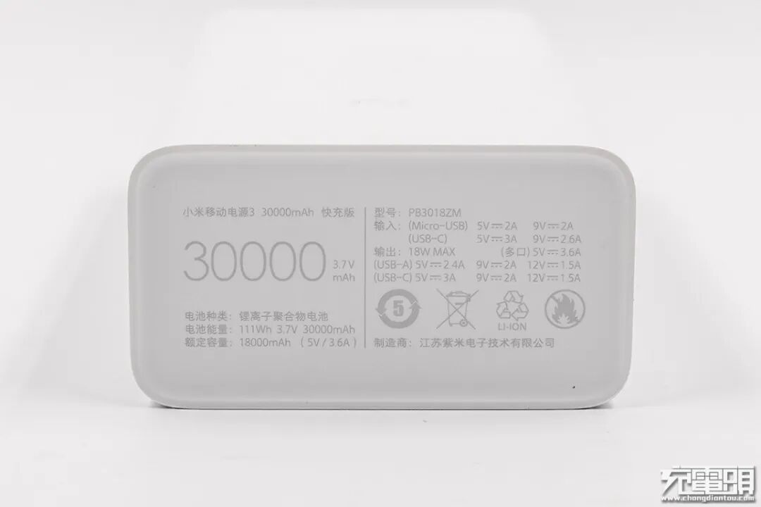 而小米的这款巨无霸级别的移动电源的电池能量为111Wh,处于民航局规定的电池能量标准的第二阶段,在通过了航空公司批准后一样是可以合法随身携带登机的。所以大家大可不用担心30000mAh大容量的移动电源是否可以携带登机,充电头网可以解决大家的疑问,不过一切还是要以各航空公司柜台的结果为准。