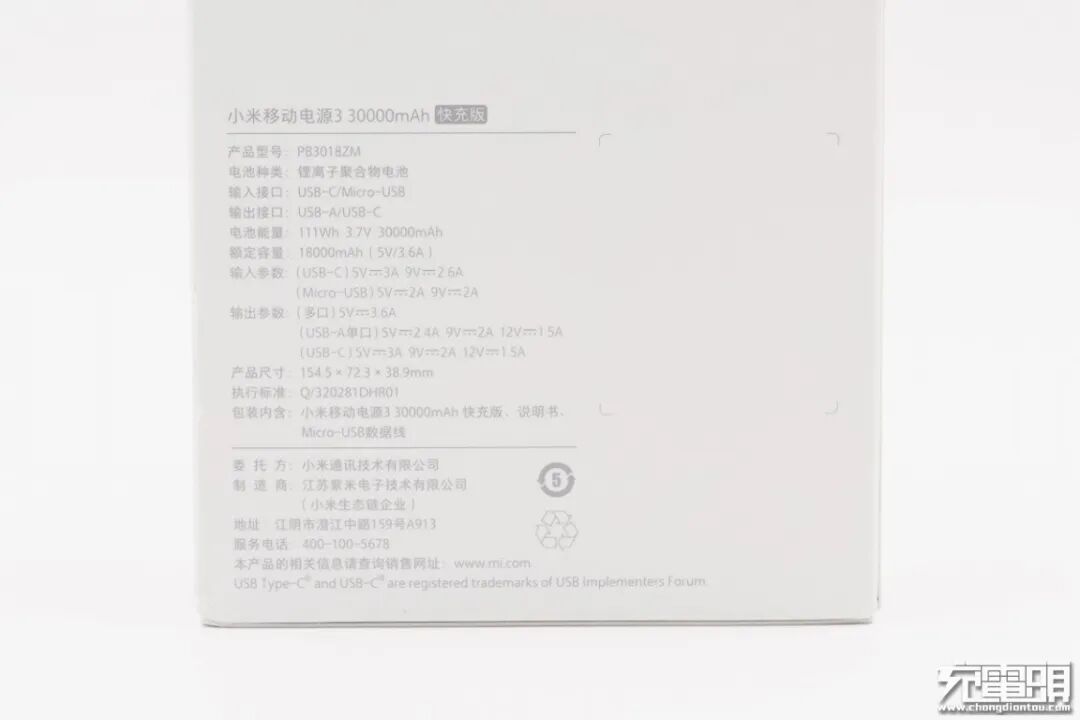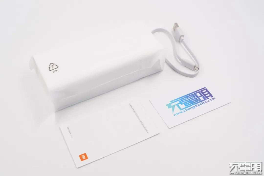 包装内含:小米移动电源3 30000mAh快充版、说明书、MicroUSB数据线