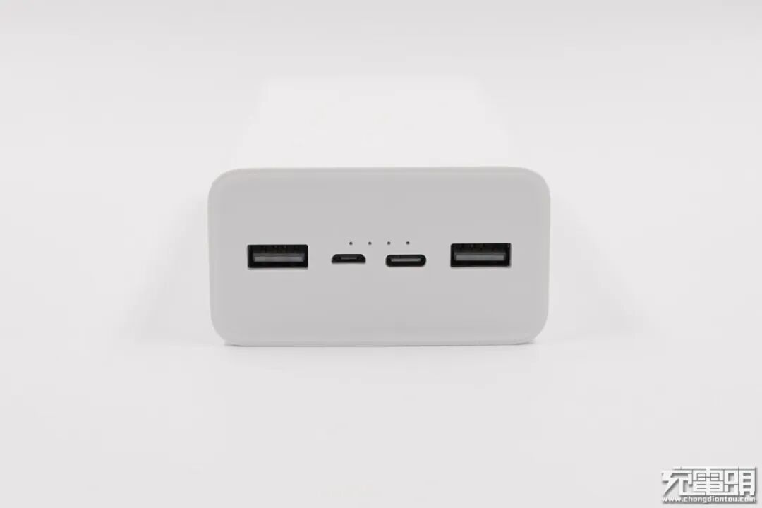 外观设计方面,小米的这款30000mAh移动电源通体白色,长方形的设计,拿在手里可以明显感觉到厚重。当然,内置的电池容量也决定了移动电源不可能直接放在口袋里使用的,肯定是要放在包里出行携带的。