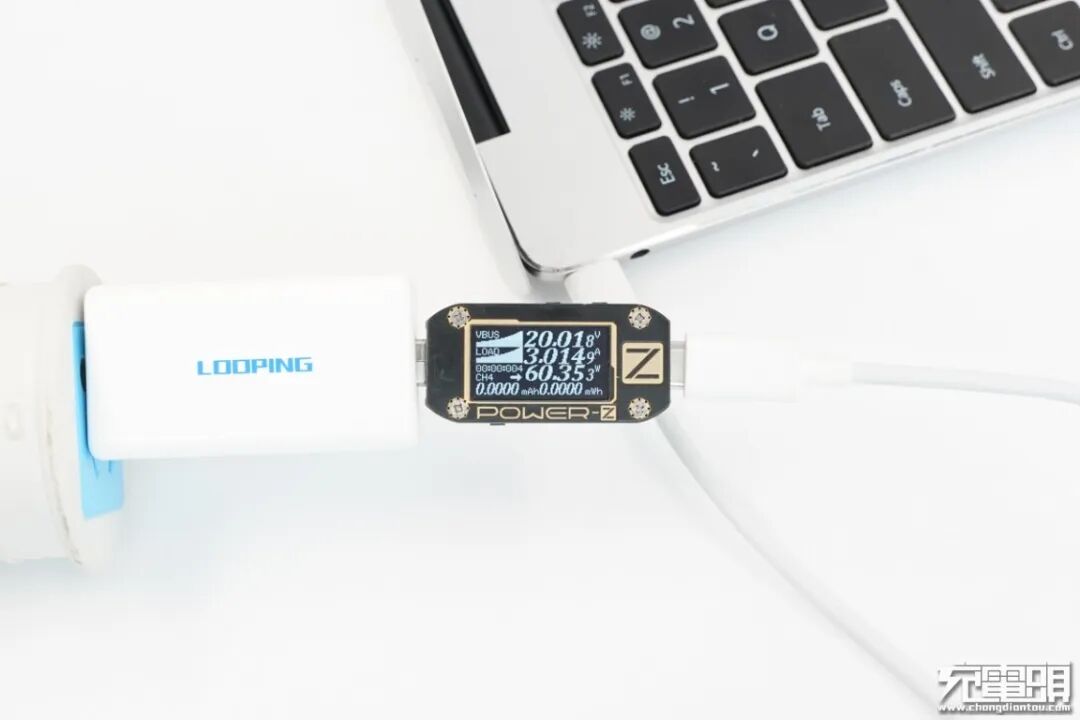 得益于氮化镓的加持龙冰的这款氮化镓充电器在保持65W输出的前提下还可以做到如此的小巧,无论是在室内使用还是出门携带都不会有太大的压力。也正是因为支持65W的大功率输出,使得其可以为办公笔记本电脑提供充足的充电功率,下面小编将模拟日常的使用情况,来看一下为办公笔记本的充电全程。使用龙冰65W氮化镓充电器为华为MateBook充电,开始时便握手了20V 3A的输入档位,功率和电流在出现了短暂的波动之后趋于平稳输入,电压、电流以及功率三大数据平台均持稳定的输入状态。约24分后,功率和电流出现了短暂的波动,约39分后趋于平稳输入,约51分后功率和电流逐渐下降直至充电结束,全程耗时约1小时58分,输入最高功率为19.96V 2.81A 56.23W。