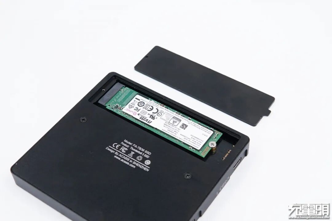 外观设计方面, ACASIS阿卡西斯的这款移动硬盘盒采用了全金属的外壳设计,更加有利于散热,顶部酷似旅行箱的外观,硬盘盒带有一个Thunderbolt雷电3接口与USB3.1接口,在背面可以使用小十字螺丝刀将盖板摘掉,将硬盘放在里面,从而完成硬盘的安装,内部的硬盘插槽支持雷电3硬盘和USB3.1的硬盘。