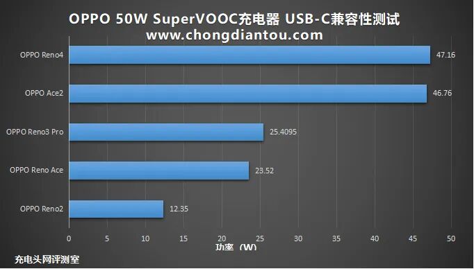 将充电器对设备充电的兼容性测试的数据放在表格当中,OPPO Reno4和OPPO Ace2这个亲儿子都达到了惊人的45W以上。![]()