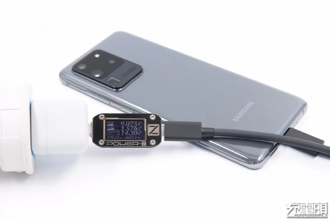 三星 S20 Ultra 5G手机支持AFC/QC/USB PD快速充电协议,使用UIBI柚比 18W PD充电器对三星 S20 Ultra 5G手机充电,功率为9.07V 1.57A 14.3W。