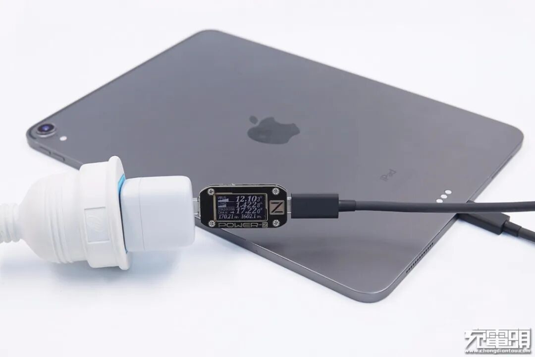 iPad Pro 11支持DCP/USB PD快速充电协议,使用UIBI柚比 18W PD充电器对iPad Pro 11充电,功率为12.1V 1.42A 17.22W。