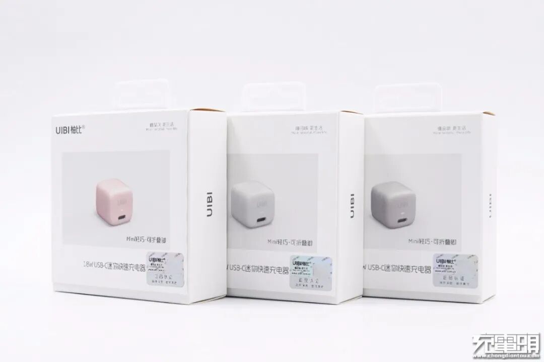 图中从左到右分别是苹果 5W USB 充电器、UIBI柚比 18W PD充电器、苹果18W USB-C 充电器。UIBI柚比 18W PD充电器以“五福一安”的体积达到了18W充电器的性能。