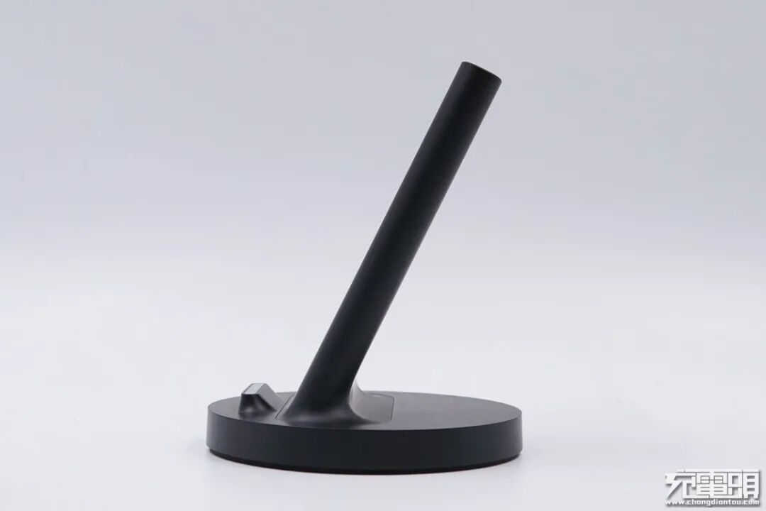 产品采用长方形面板外加圆形底座的结构设计,整体风格简约沉稳。正面有一个无线闪充的标志Logo。