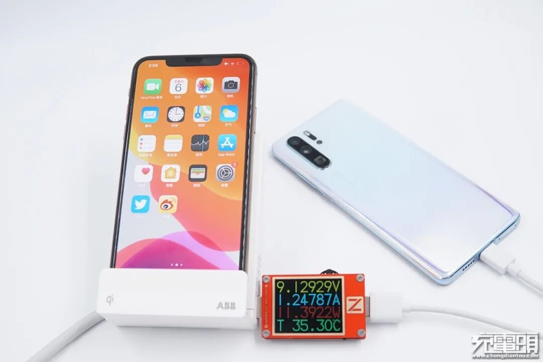 测试证明iPhone11 Pro Max未在进行充电,两套充电系统无法同时充电。华为P30 Pro功率达到11.39W,与产品介绍相符。