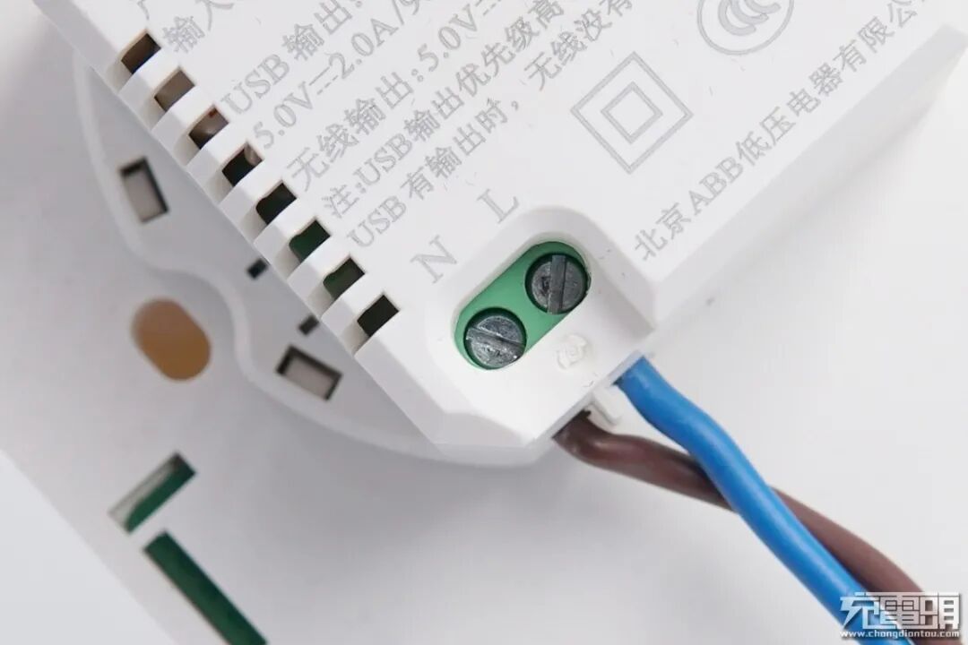 这块突出部分还有螺丝孔,上面印有“N”、“L”,安装时就从此处接电线。