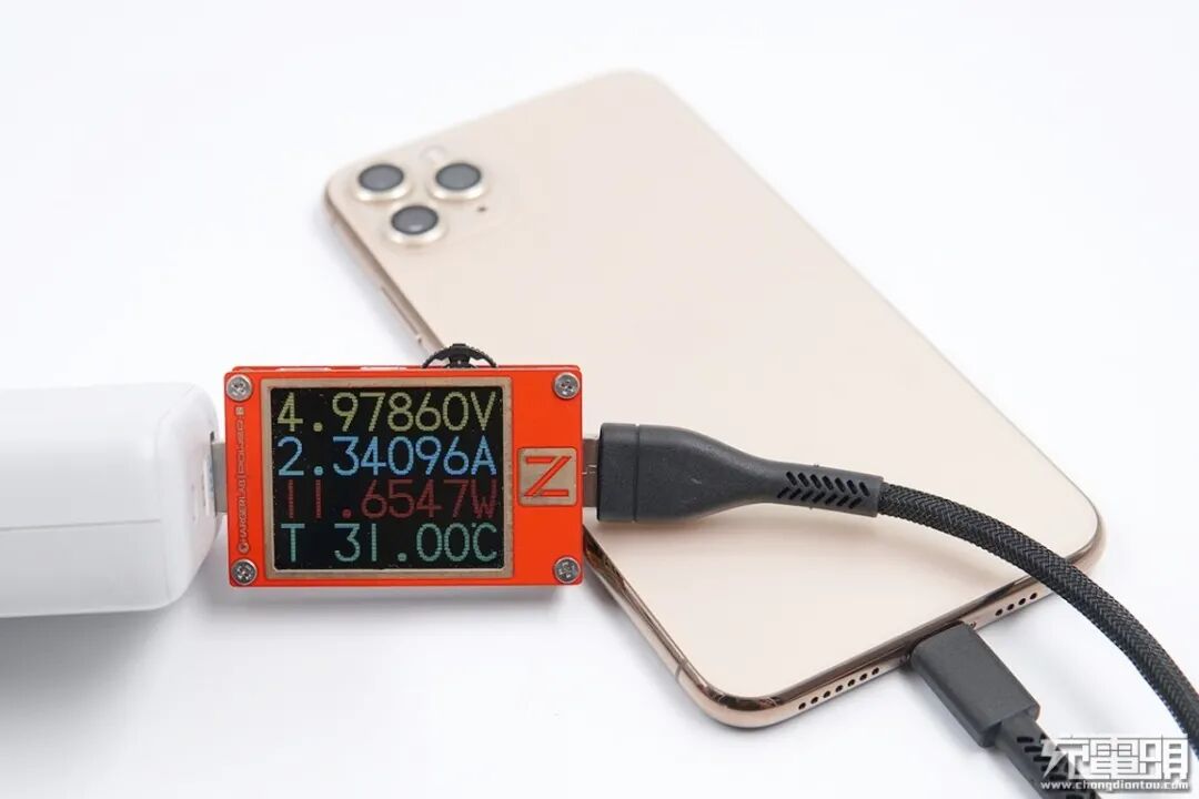 对iPhone11 Pro Max 进行充电,功率为4.97V 2.34A 11.65W,成功握手5V电压档位。